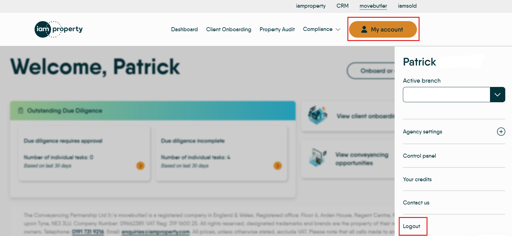 Click on 'My account' in the top right of the system to open the menu.
