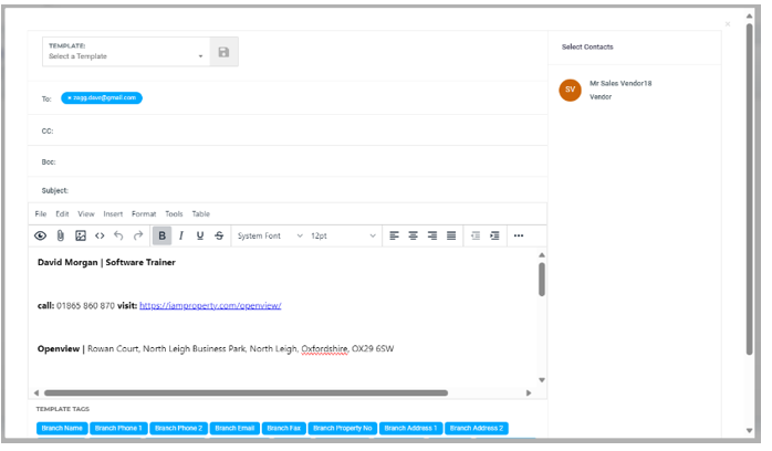 Sending this way, the email is automatically added to the Property Record journal so a record is kept.