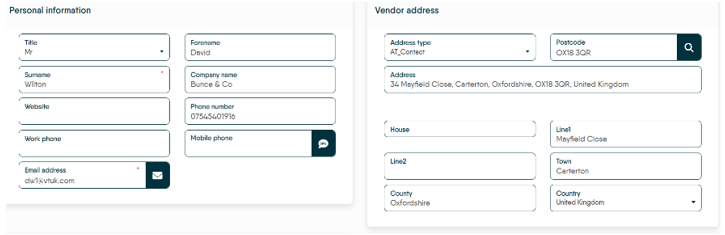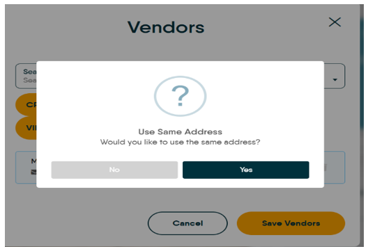 If Creating a new Vendor you will be asked if you want to use the same address, once selected complete the new vendor record (which will open in a new screen) with as many details as you have.