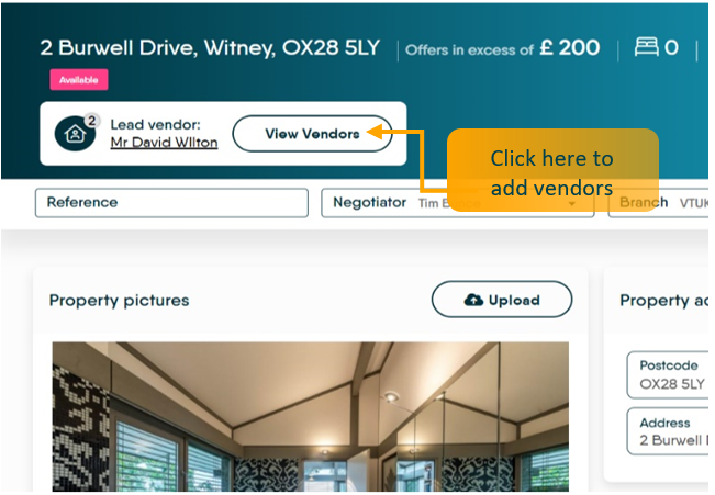 Click into the ‘View Vendors’ field at the top of the Sales Property Record and add all your Vendors to the property.