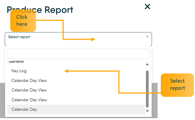 Click into the drop down menu and select the Calendar Day Report from the list. There may be multiple for each branch, or just one.