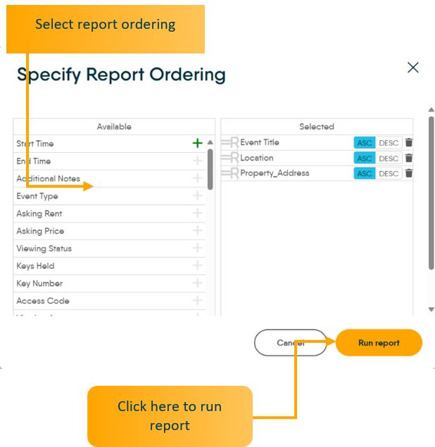Once you have clicked ‘Run Report’ you will have the option to select how you want the report sorted. Click one of these options. Once you have selected the report ordering there is an option to select to sort in ascending or descending order. Then click ‘Run Report’.