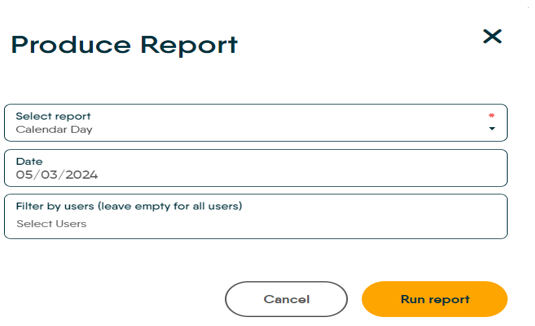 Set the date you want to run the report for, default is always todays date. To change the date click into the date field and select the date you want to use.