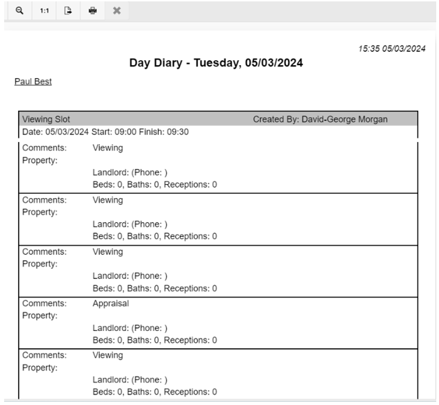 From this screen you can print the report by clicking the print button, or export the file to pdf (or a number of other formats).
