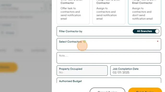 25. Click "Finish Assign" to send the job to the contractor.