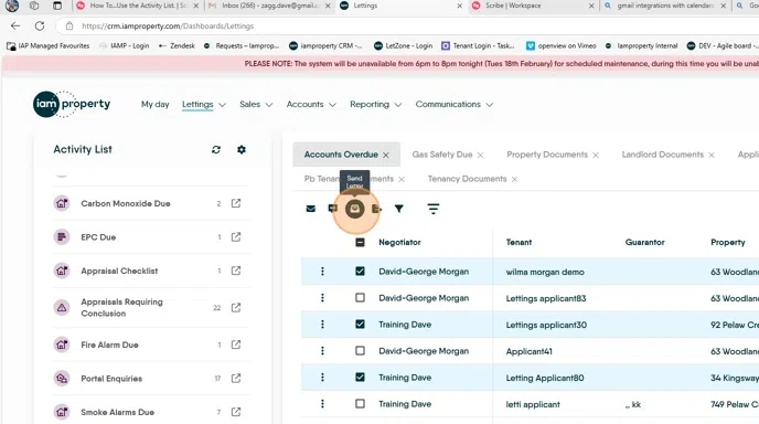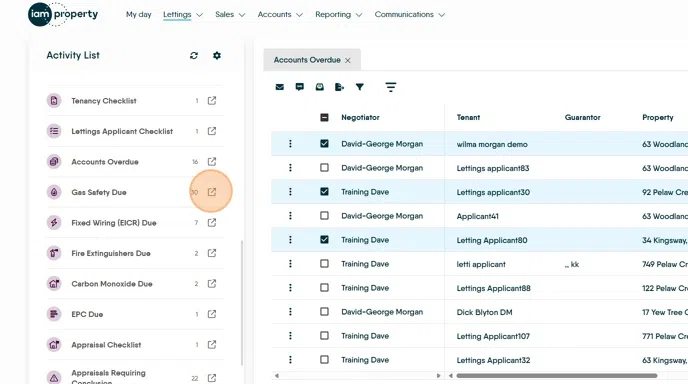 Accessing Lettings (or Sales) Dashboards and Activity Lists