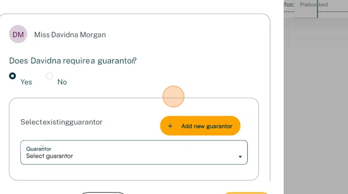 12. Then either search for (if you have already added the Guarantor details) or add the new Guarantor Click "Select guarantor"