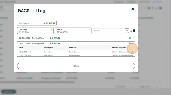 12. Once created the BACS payments will look like this in the Client Account.