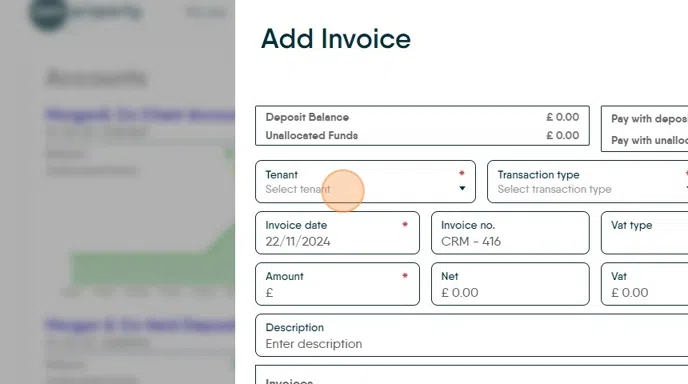 This guide provides a step-by-step process for collecting a deposit payment from a tenant through the CRM Accounts platform, ensuring a smooth and efficient transaction. It details the necessary actions and choices to make during the collection process, which can save time and reduce errors for property managers. N.B. Deposit invoices are NOT automatically created.