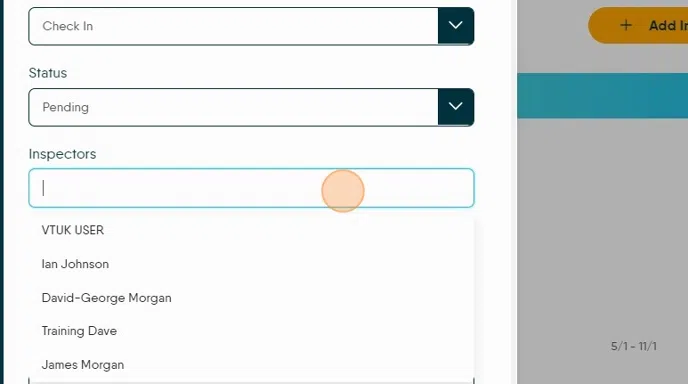 10. Click "Inspectors" to select the Inspector or Inspectors that are conducting the Inspection.