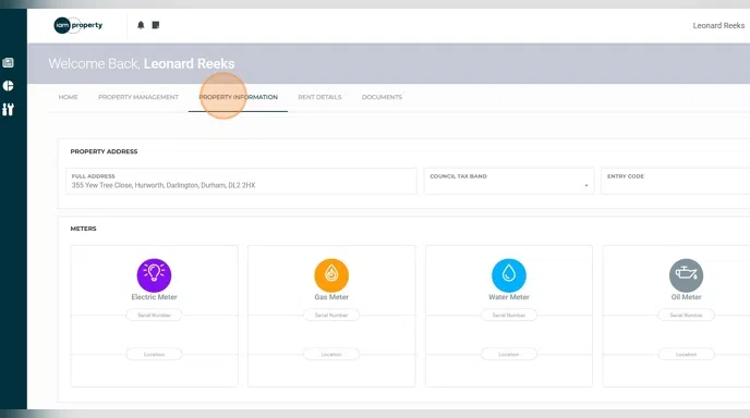 4. Click "Property Information" this tile will show the Tenant all the information added to the Information screen in the property record.