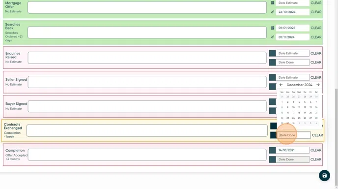 3. To trigger the Exchange actions, against 'Contracts Exchanged', click the "Date Done" field.