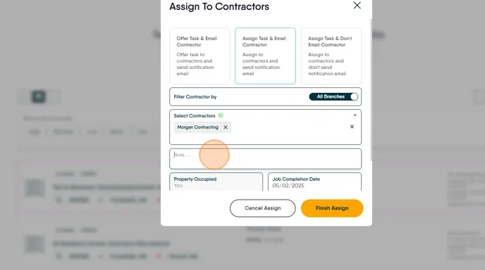 26. Click "Finish Assign" and your contractor will receive an email with the details for the job.