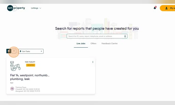 8. Click "Live Jobs" this will take the Contractor to their currently allocated jobs.