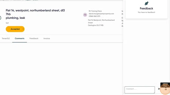 14. Click "Comments" to access the 'chat' function, this allows a chat between the Agent and the Contractor