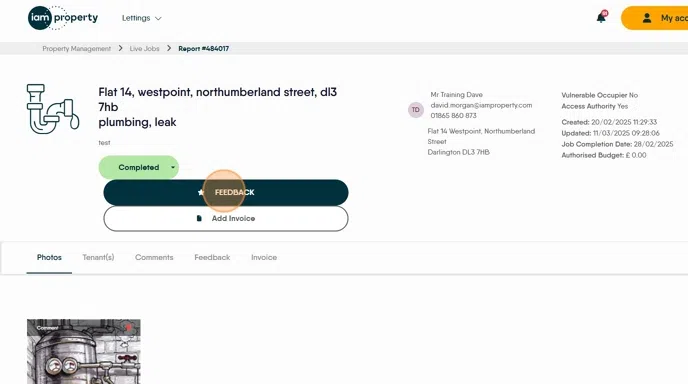 24. Click "FEEDBACK" to leave feedback on the job, both text and images can be added.