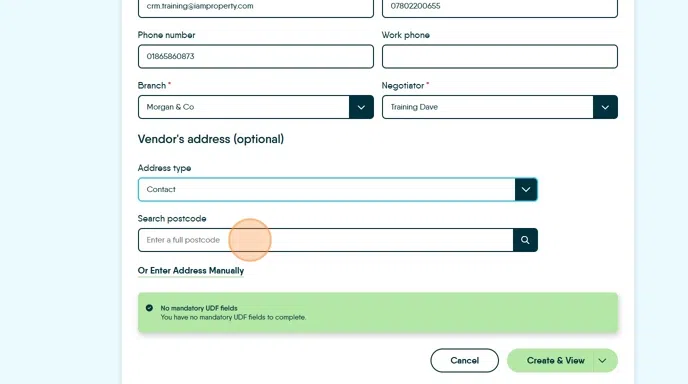 9. Click the "Search postcode" field. Select the address from the drop down menu, or manually add the address using the option on screen.