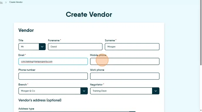 Tip: Tip! If there is a second (or more) Vendor then it is good practice to add the second as a new record. EVEN WHEN the client is a married couple.