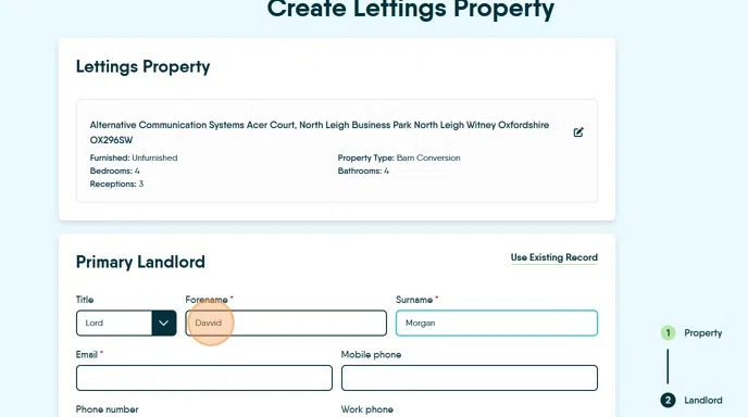 Tip: Tip! If there is a second (or more) Landlord then it is good practice to add the second as a new record. EVEN WHEN the client is a married couple.