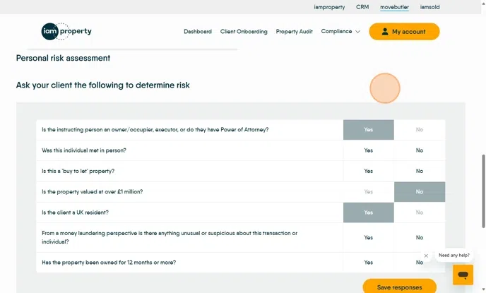 Alert: Alert! Before you complete and move on from this screen make sure ALL legal owners are added to this check and individual risk assessments are raised.