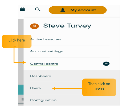 To do this, from My Account Tab, go to ‘Control Centre’ select the ‘Users’.