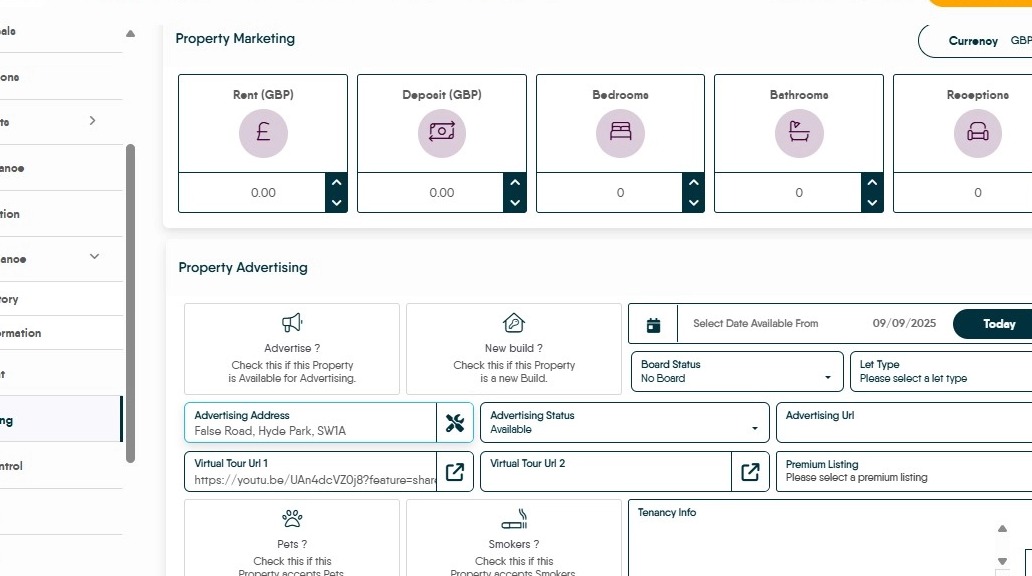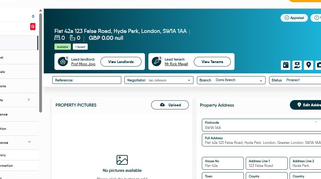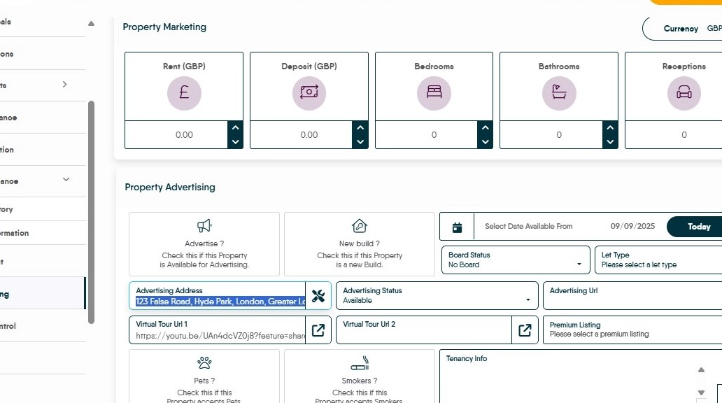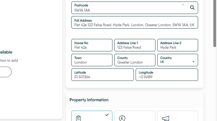 1. When marketing a property, by default the property address will be uploaded as Address Line 1 and 2, Town, County, and the first half of the Postcode.