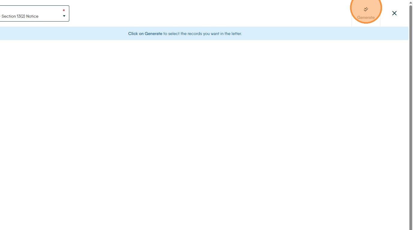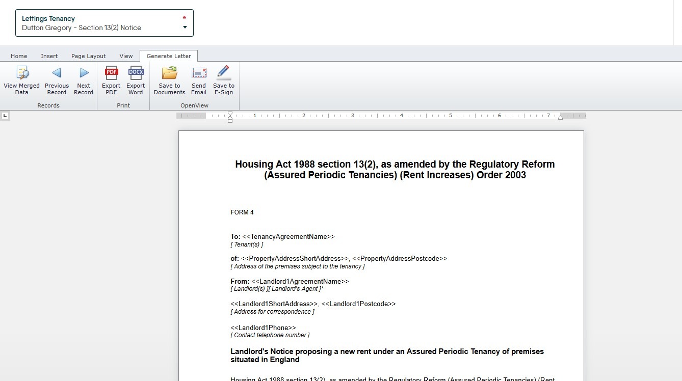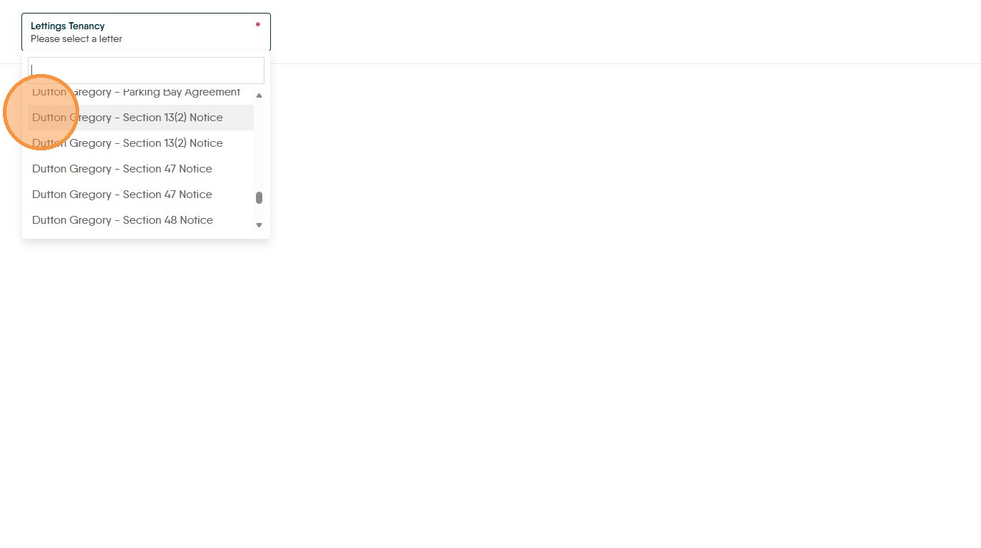 15. Select your Section 13 notice from the the drop down menu in this example we are using the optional Dutton Gregory letters pack so we select "Dutton Gregory - Section 13(2) Notice"