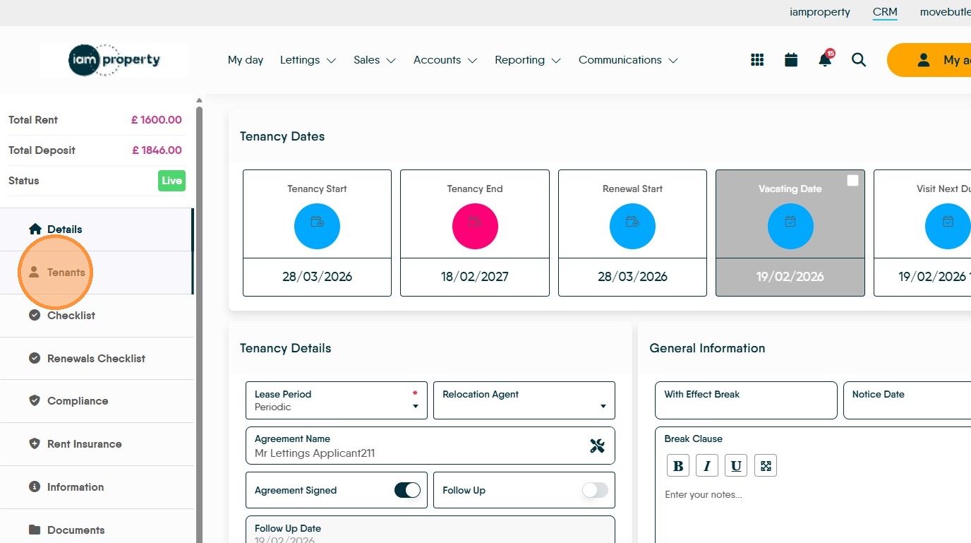 3. Navigate to the Tenancy Record