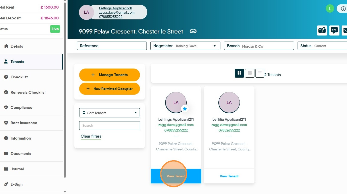 17. Check the details for the Landlord and click "Tenants"...