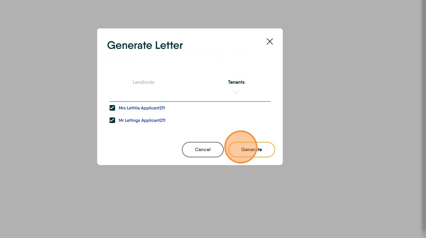 18. ...to check the details for the Tenants. Click "Generate" to create the letter.