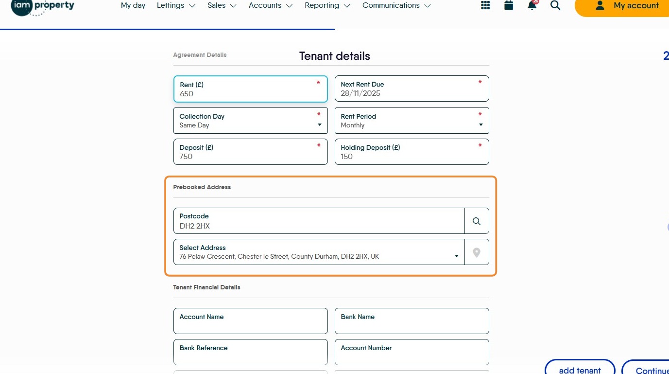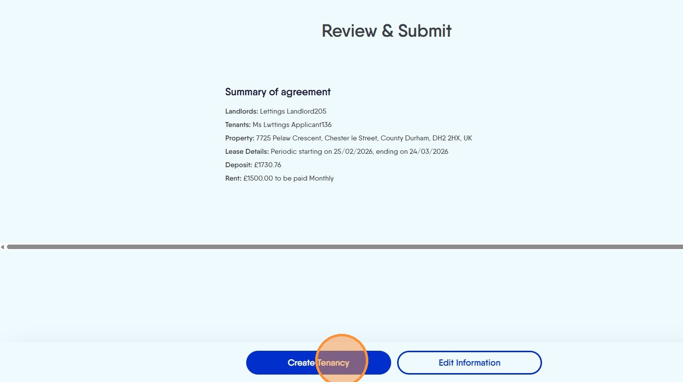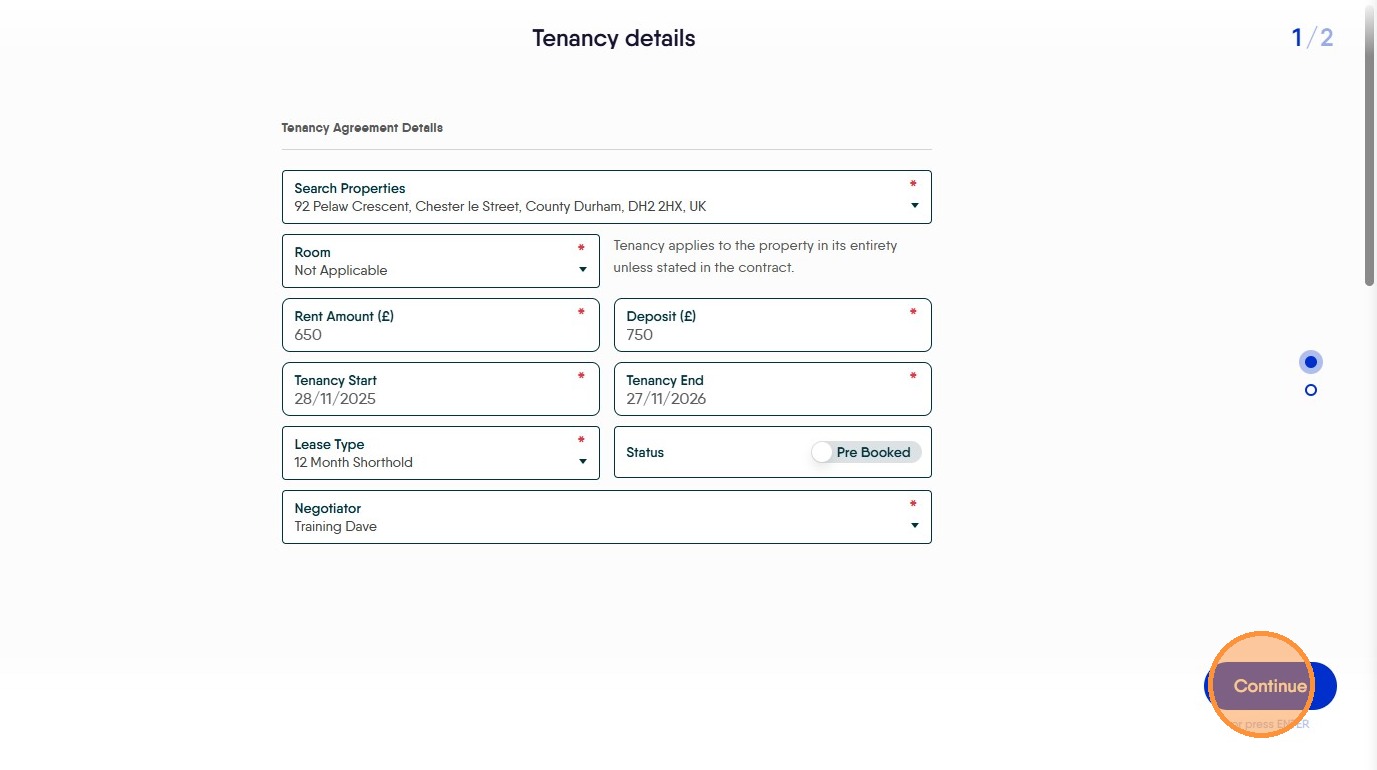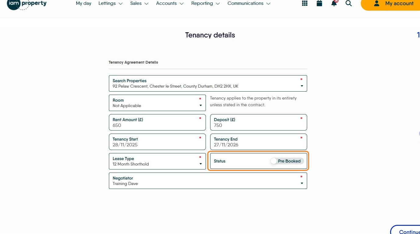 21. The Pre Booked Tenancy will now be created.