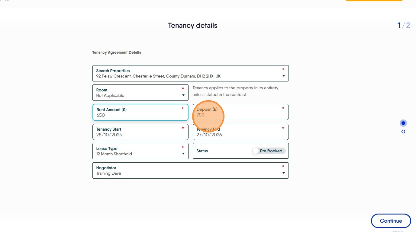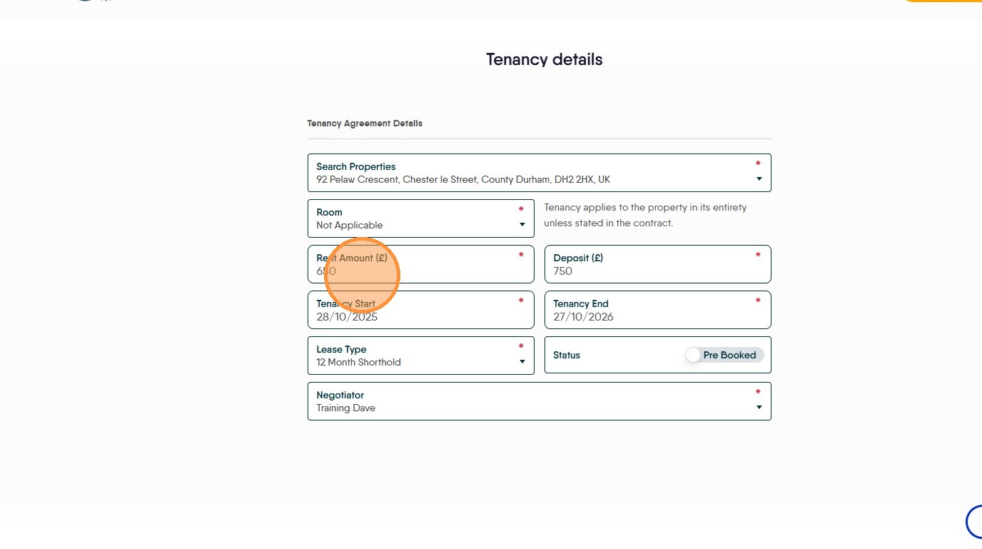 13. Check the Rent details are correct, is each tenant paying their own share or is one tenant responsible for paying? Click the "Rent Amount" field to edit the rent, the Deposit amount will change automatically as will the holding deposit.
