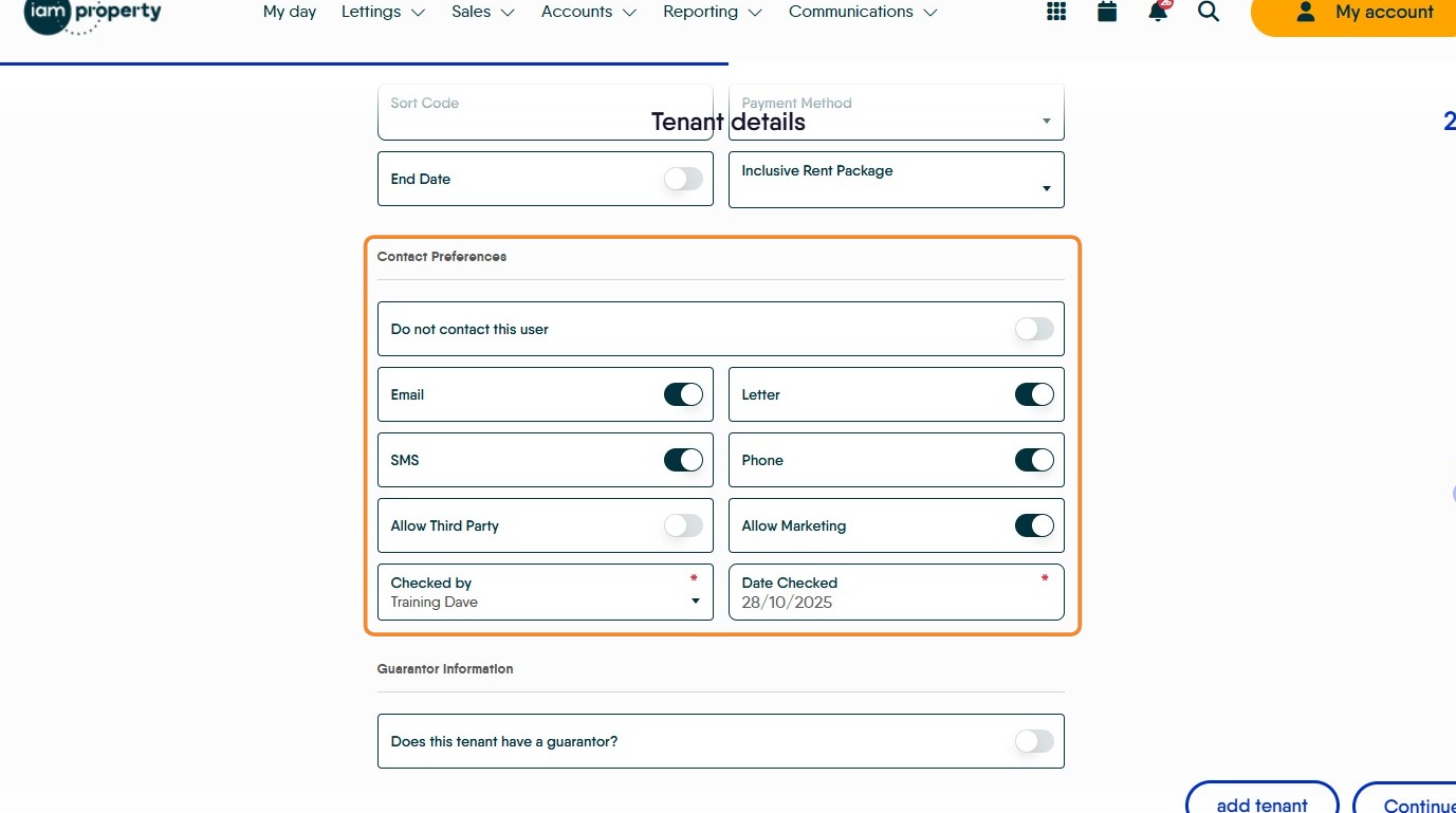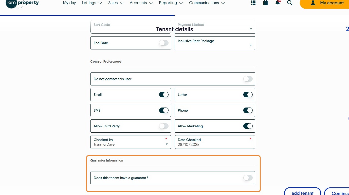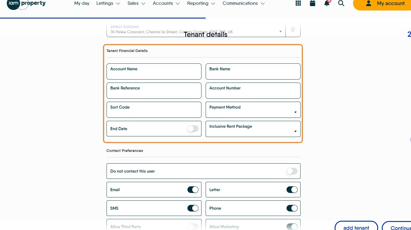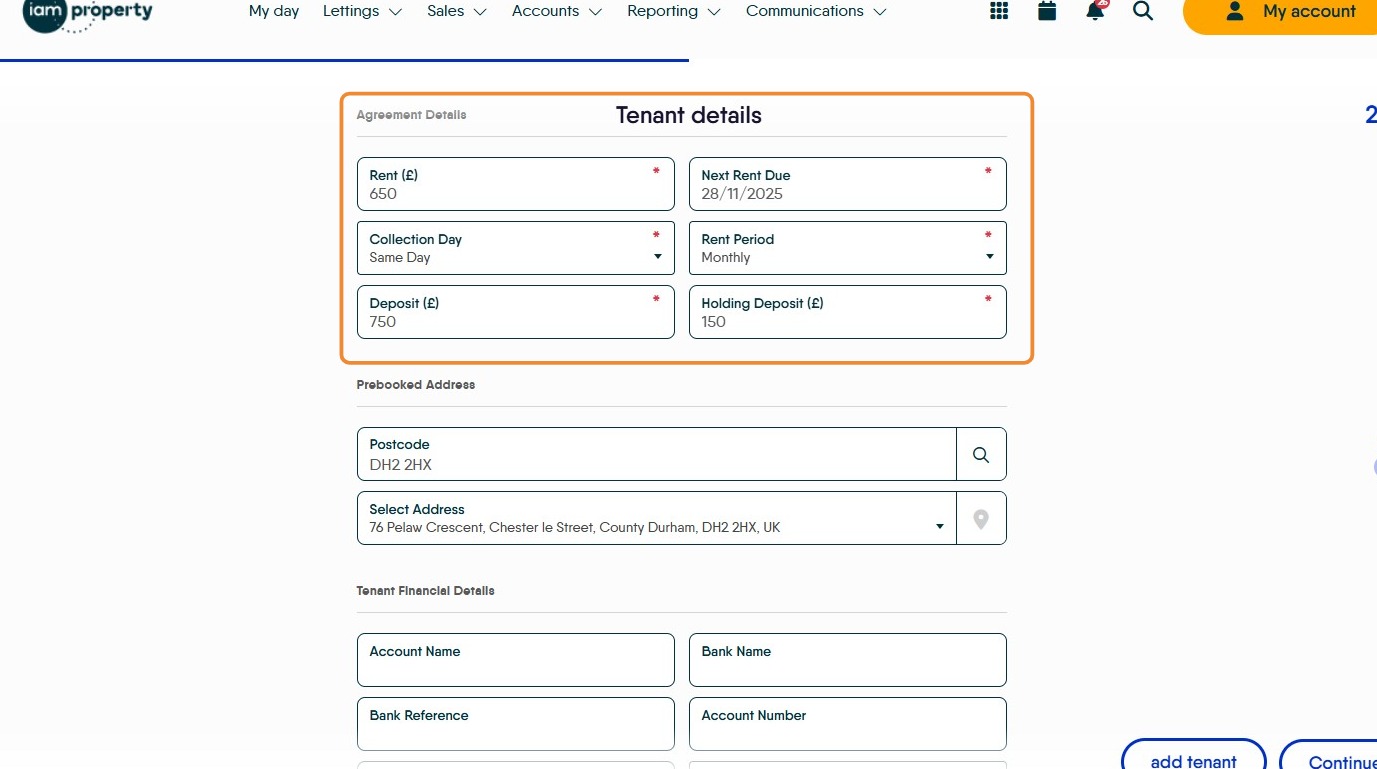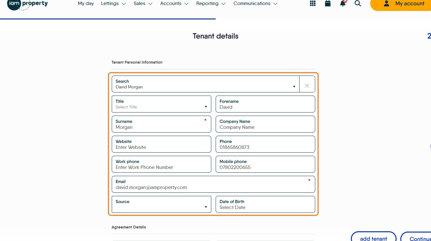 12. The Tenant details will automatically be entered, check they are correct and complete any gaps. Click into the fields to edit if required.