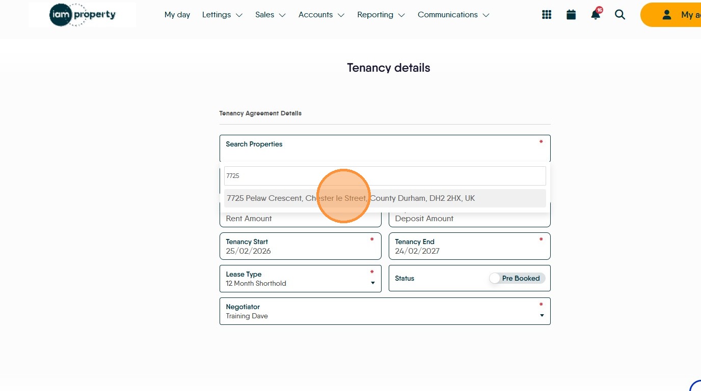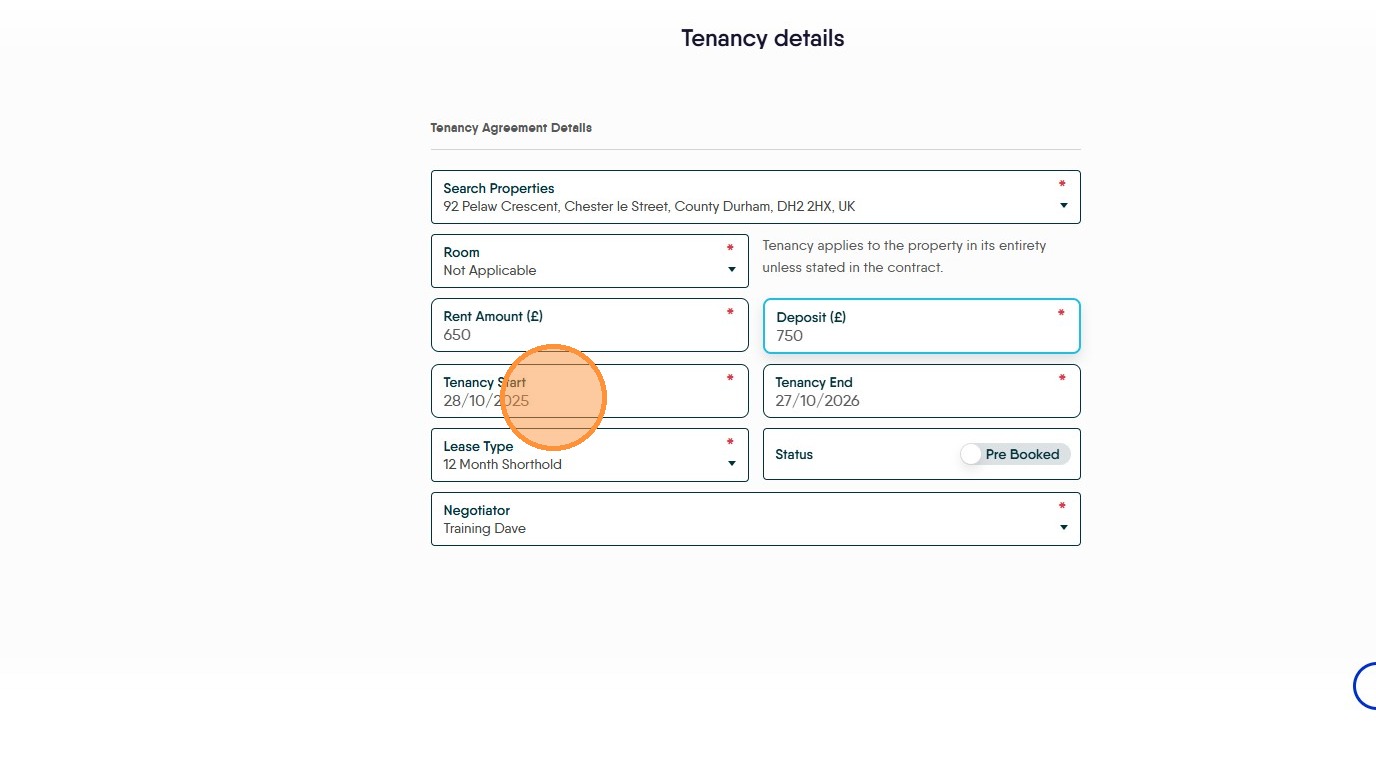 7. Click the "Select Date" field and set the date the tenancy is due to start.