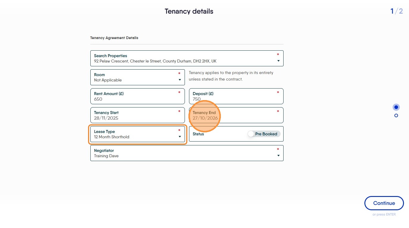 9. The Tenancy End date is controlled by the 'Lease Type' option and for a periodic tenancy will be 1 month onwards from the Tenancy Start date.