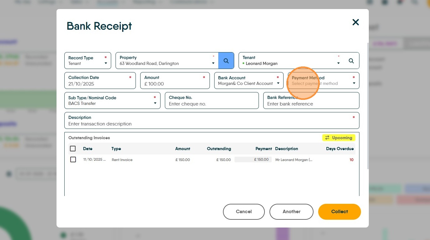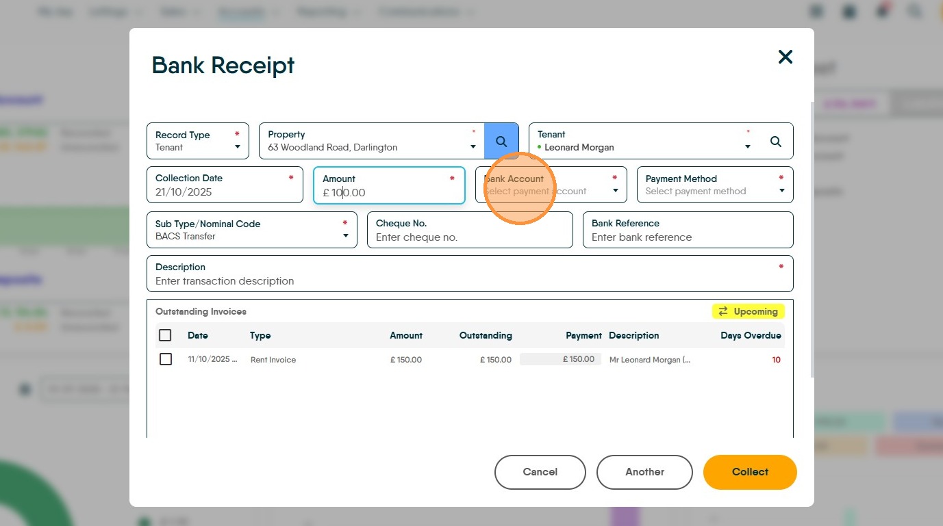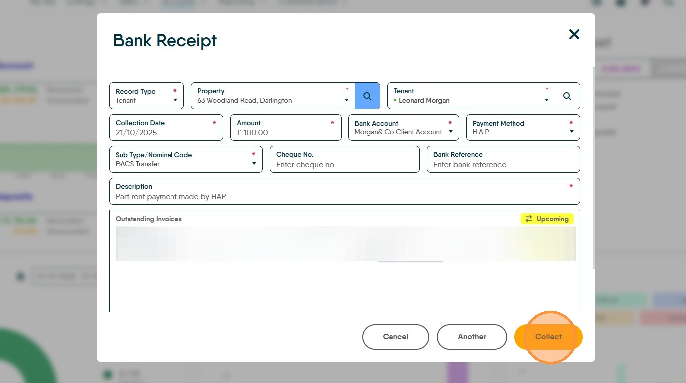 12. As an example, if you are paying £100. Type £100 in the 'Payment' field. Then click "Collect"