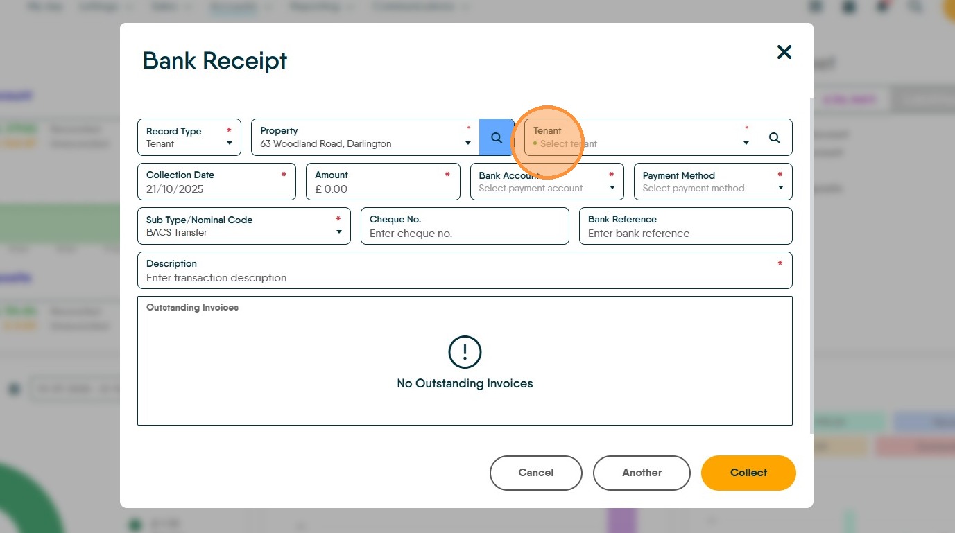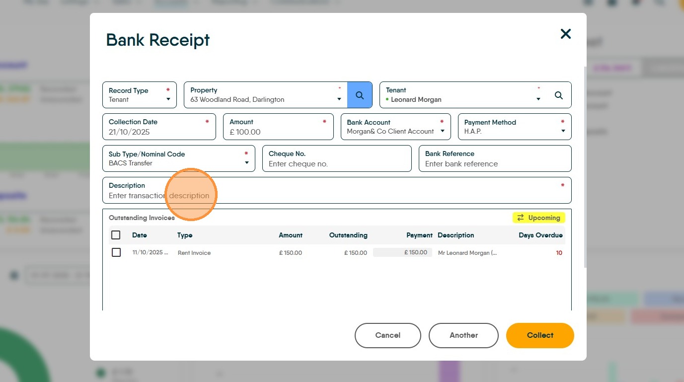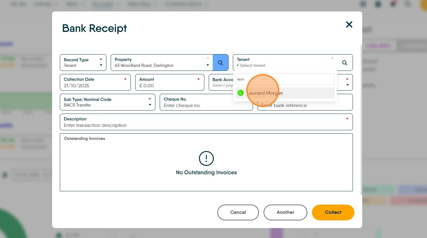 12. As an example, if you are paying £100. Type £100 in the 'Payment' field. Then click "Collect"