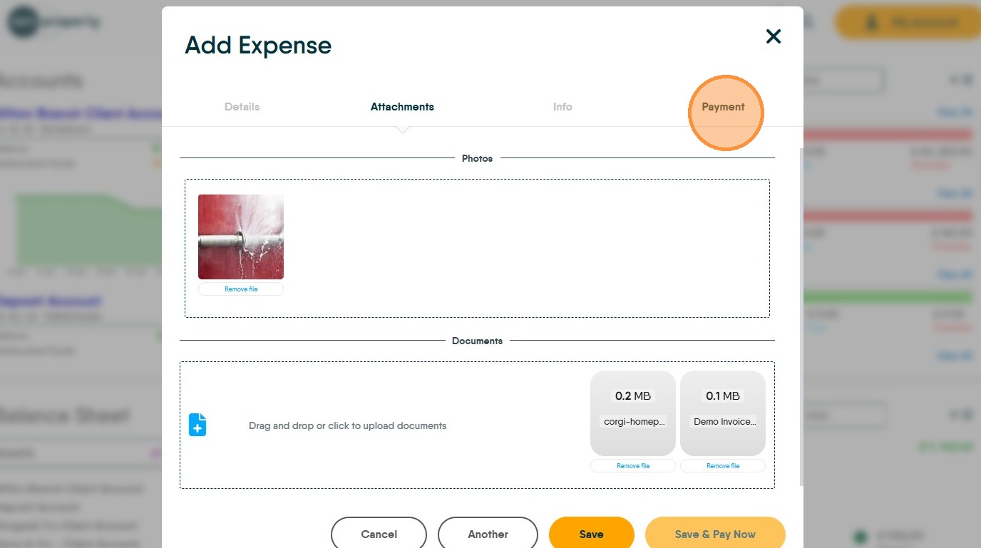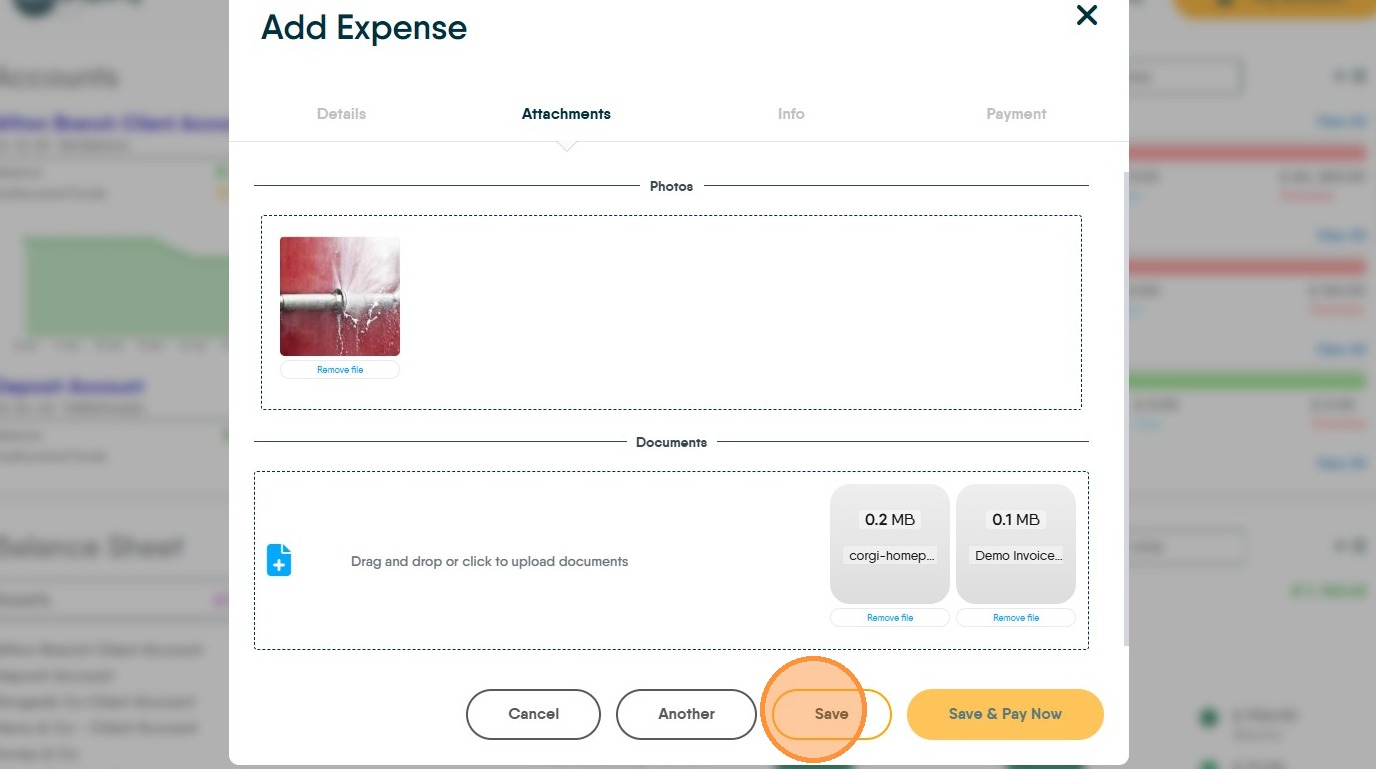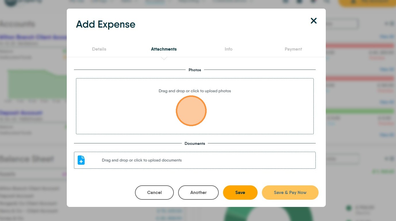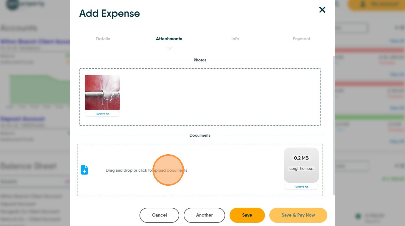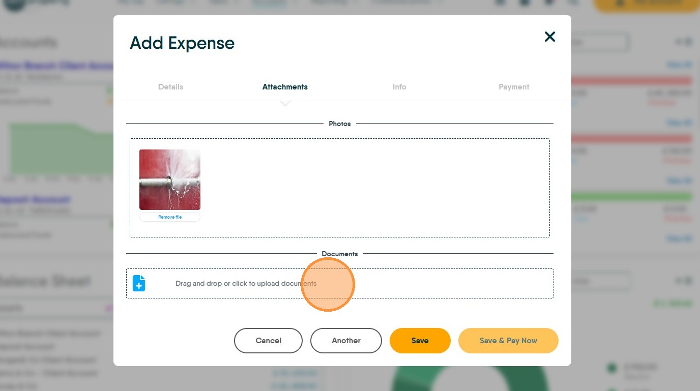 15. Click "Drag and drop or click to upload documents" upload any copies of documents into here from emails or folders on your computer. These images could be copies of the Invoice or other types of documents.