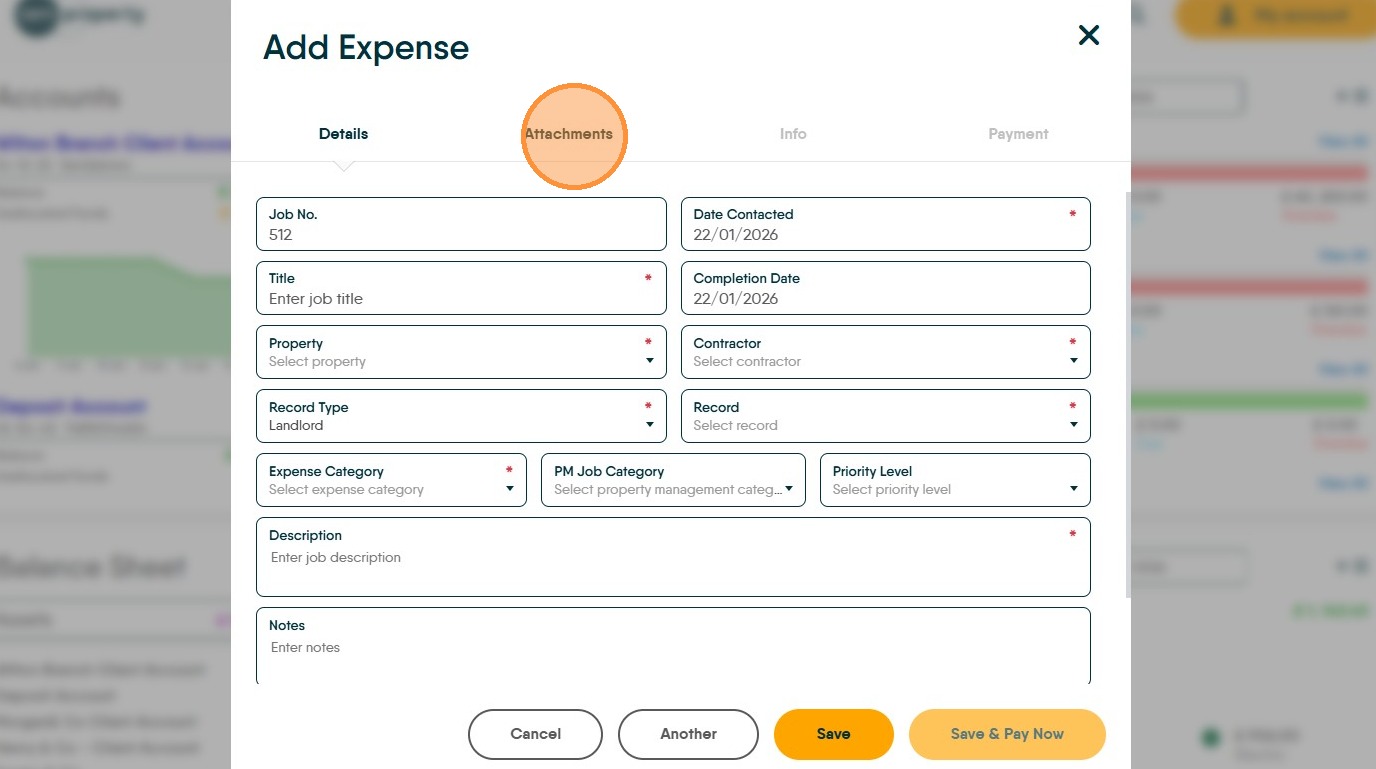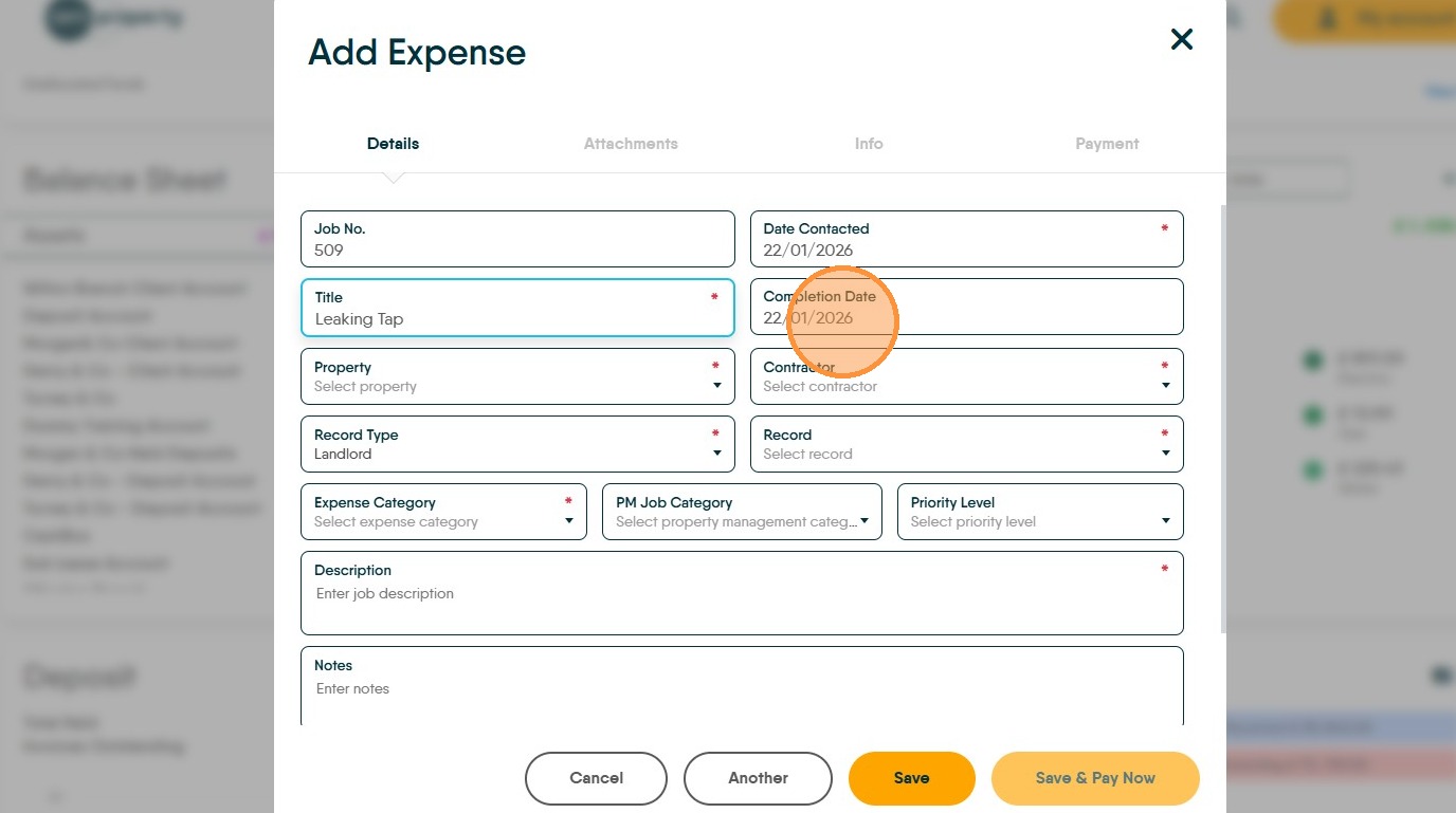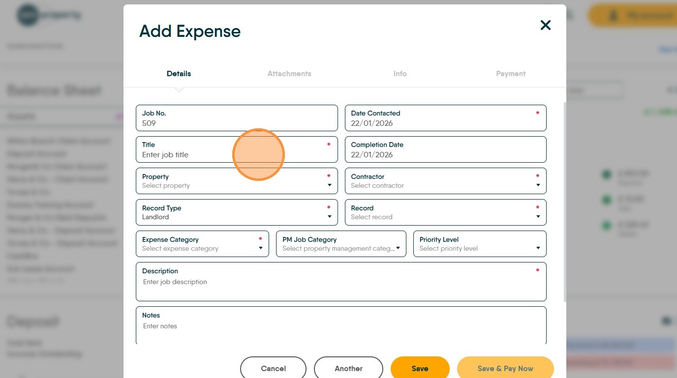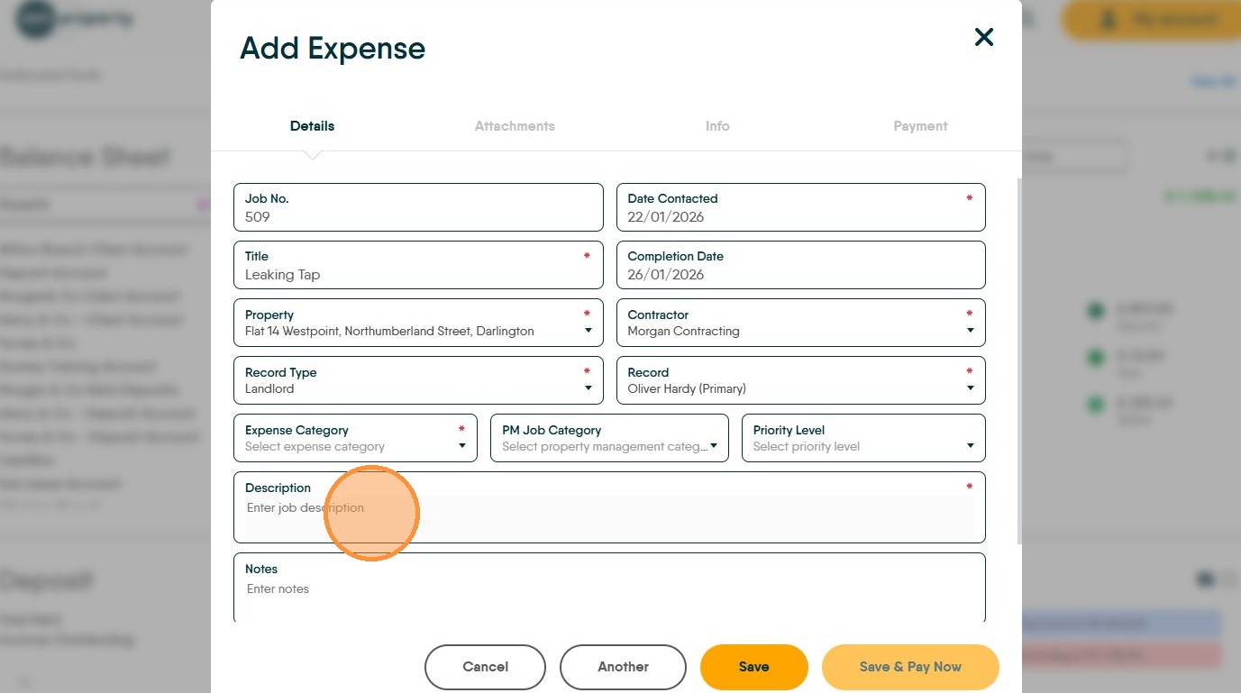 10. Click the "Description" field and enter a clear description of the job. This may be shown to the Landlord as part of their statement.