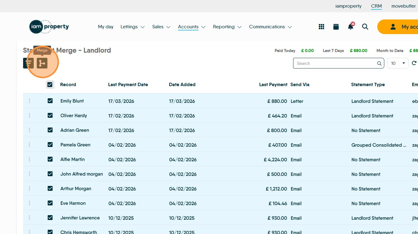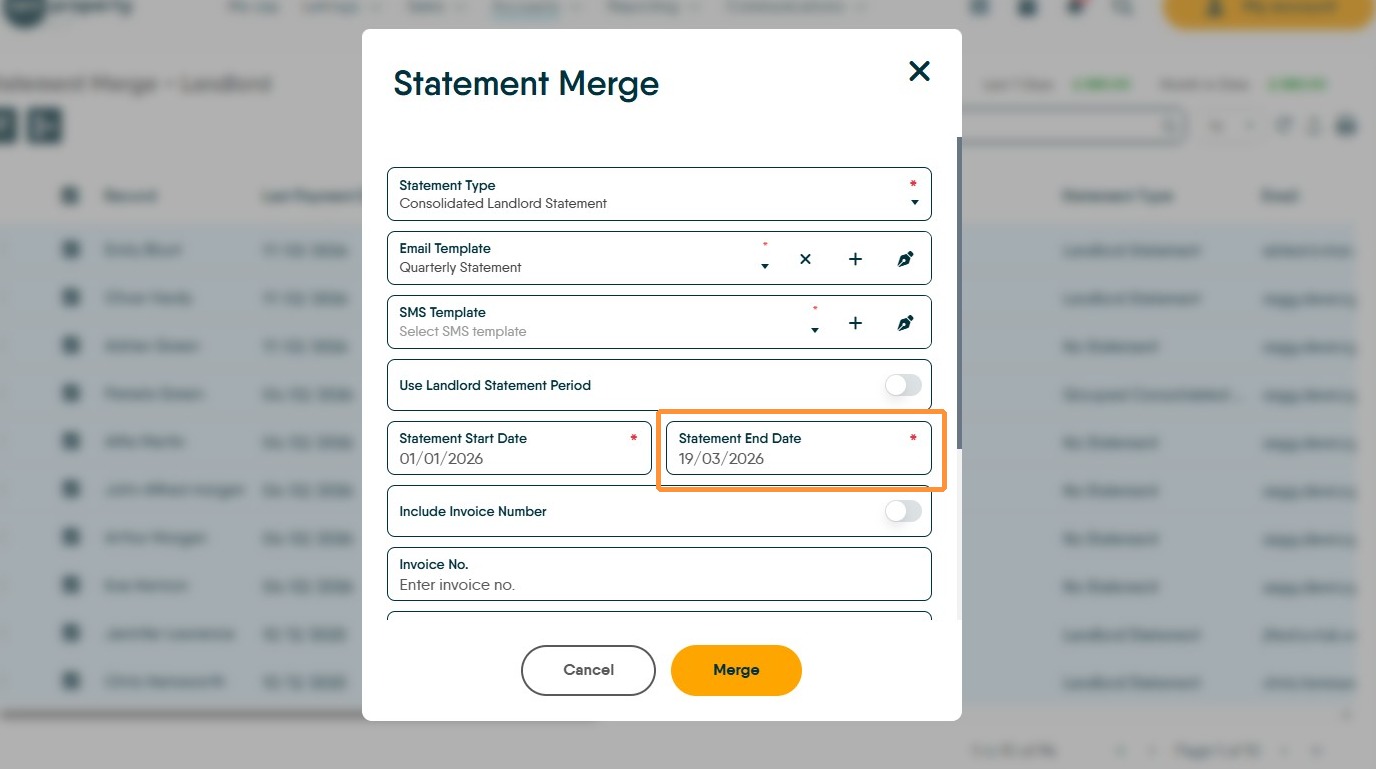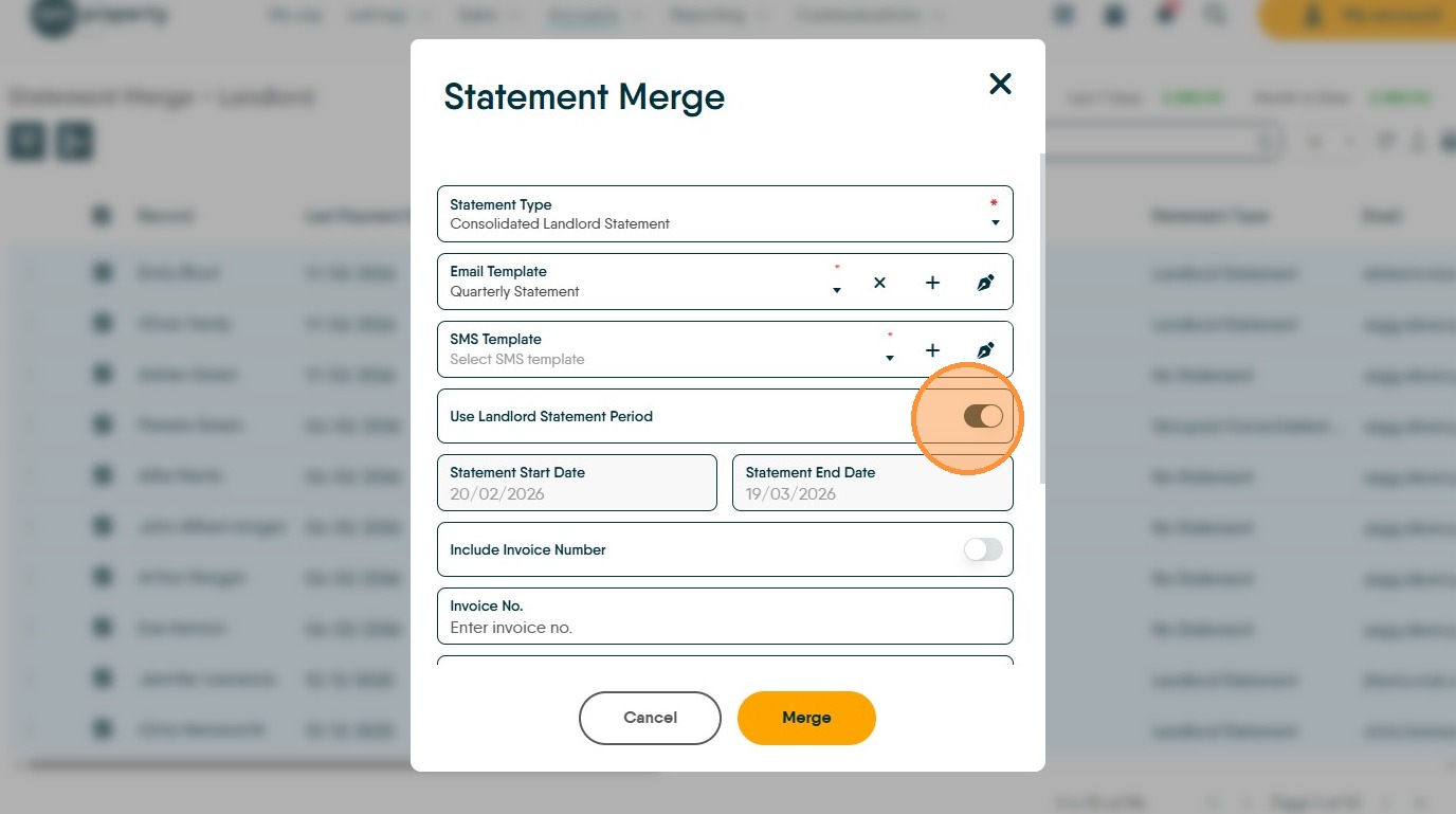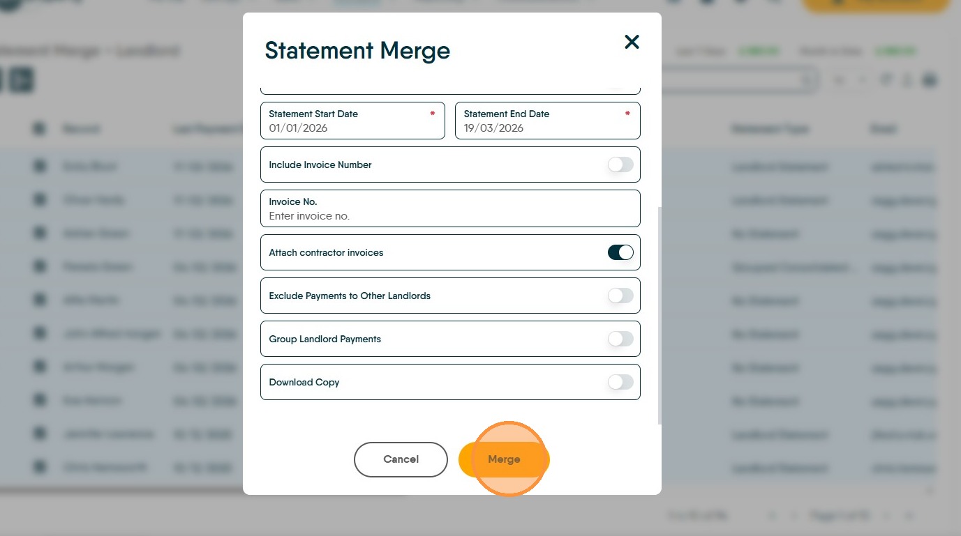16. Click "Merge" this will then create the statements, attach them to emails and send out to the Landlords selected.