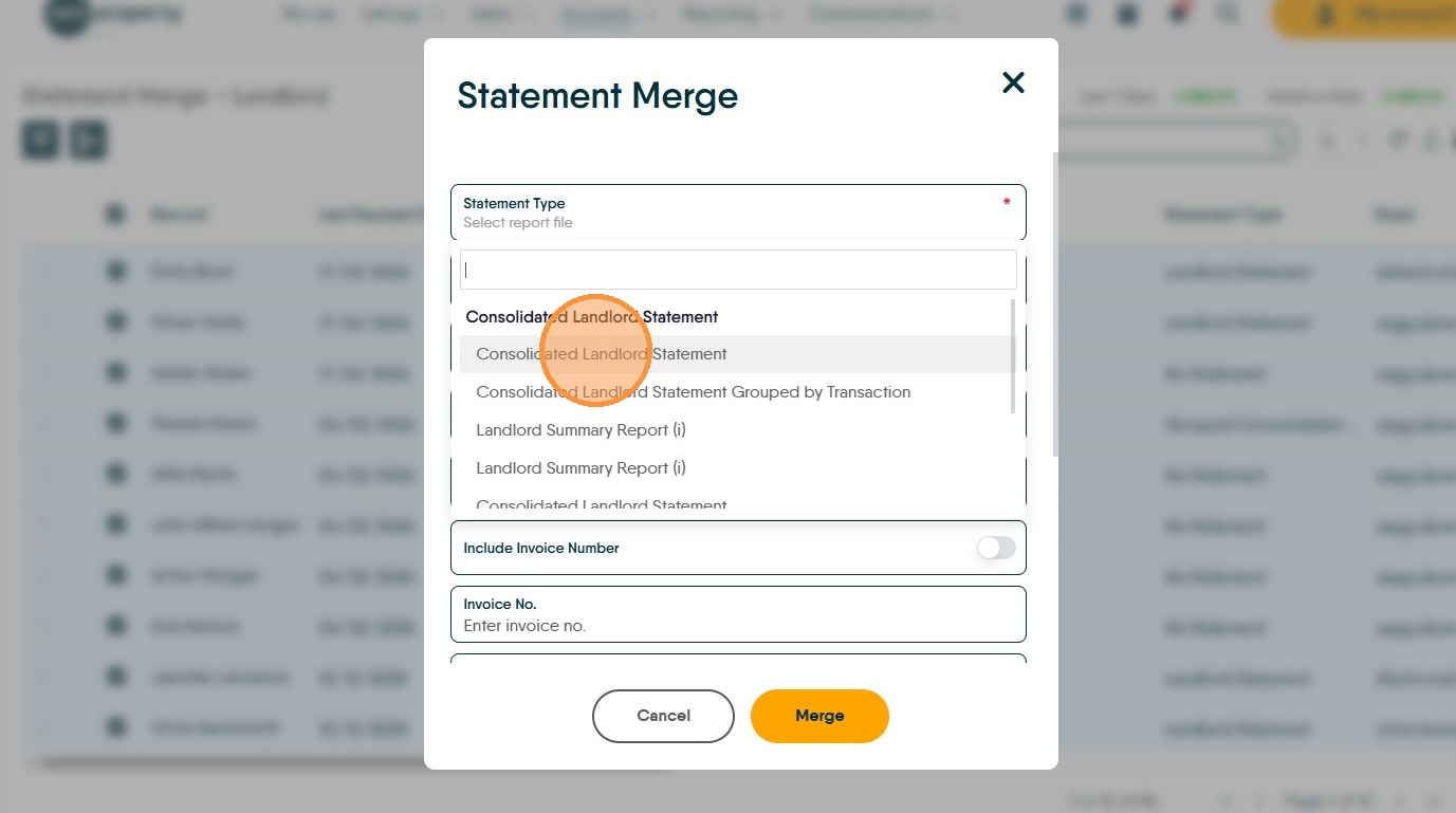 11. From the drop down menu select "Consolidated Landlord Statement"
