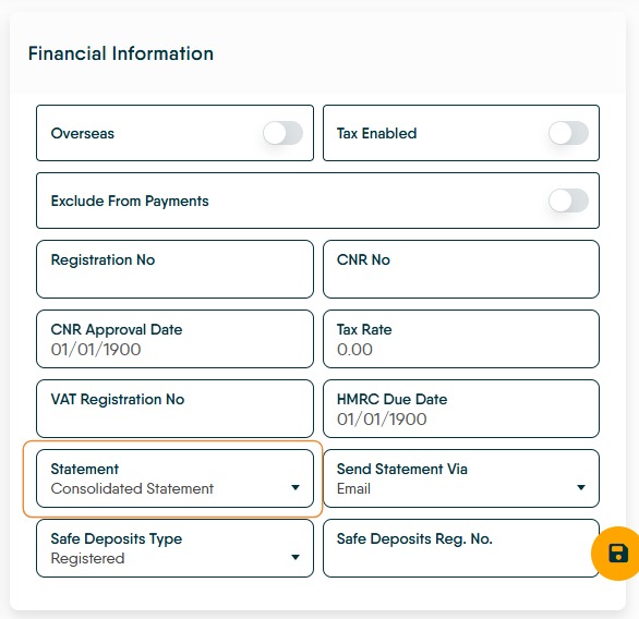 Top Tip! - If you want to easily identify those landlords who want/need a quarterly statement you can use the statement type field on the Landlord record to select Consolidated Statement and this will feed through onto the filters on the statement merge. This is in the Landlord Record, in the Financial Information section.