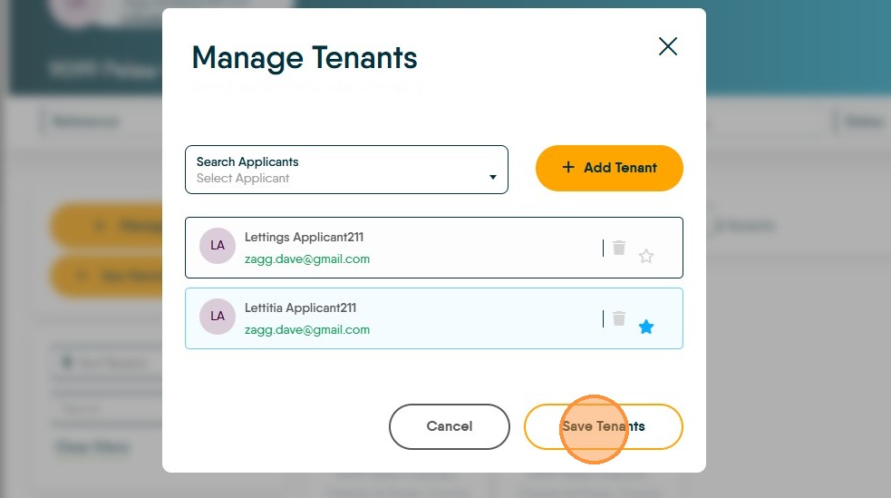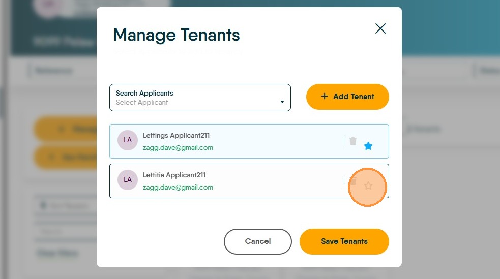 4. Click on the 'empty' star next to the Tenant who is taking over as the Primary tenant. This will turn blue to show the transfer has been done.