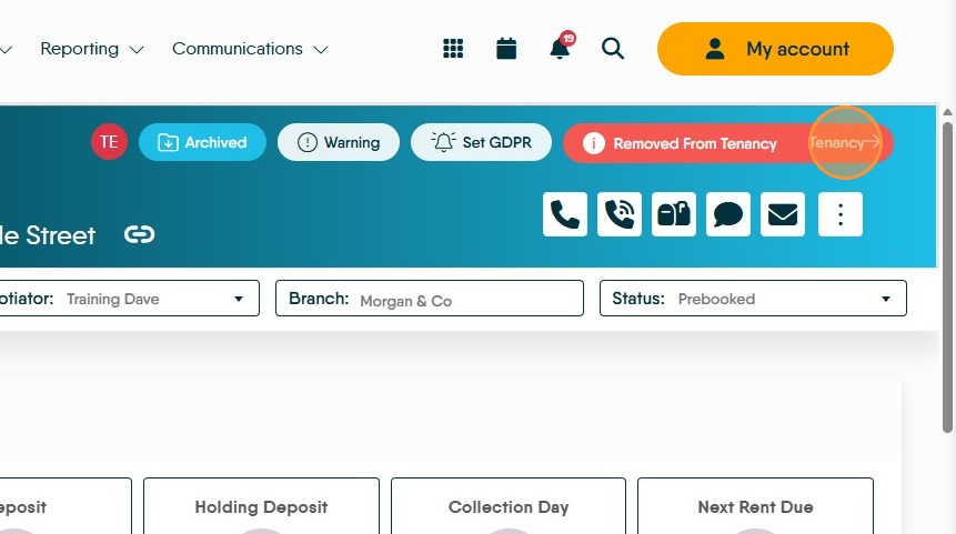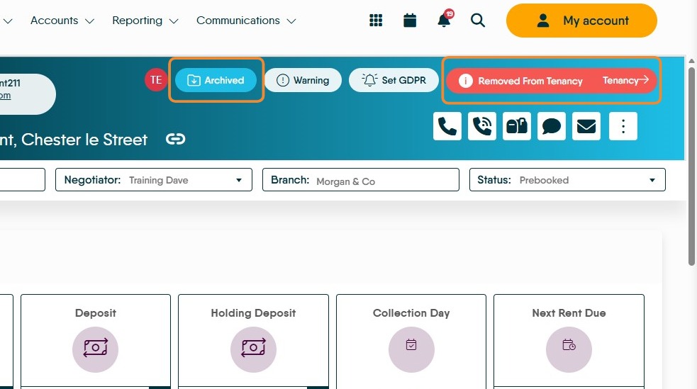 11. The Tenant Record will now show as "Archived" and Removed from Tenancy will show.