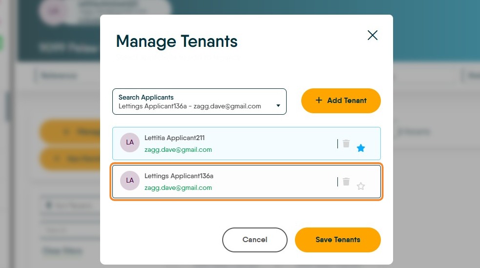 Alert! If the Tenant you are removing is the primary tenant i.e. has the 'blue' star next to the name. The Primary tenancy needs to be moved to the existing tenant.